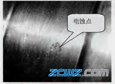 轴承组装后在使用过程中因外部原因,有不明电流流过轴承,会在轴承滚道面及滚柱上产生电流烧灼点,影响轴承的使用寿命。此类电流腐蚀一般不外乎两种,一种时机车落成后,在电焊施工是回地线搭接位置不正确导致轴承通电引起电蚀;一种是电机本身在运行是产生漏电流或电机发生放炮后使得轴承有电流流过产生电蚀。